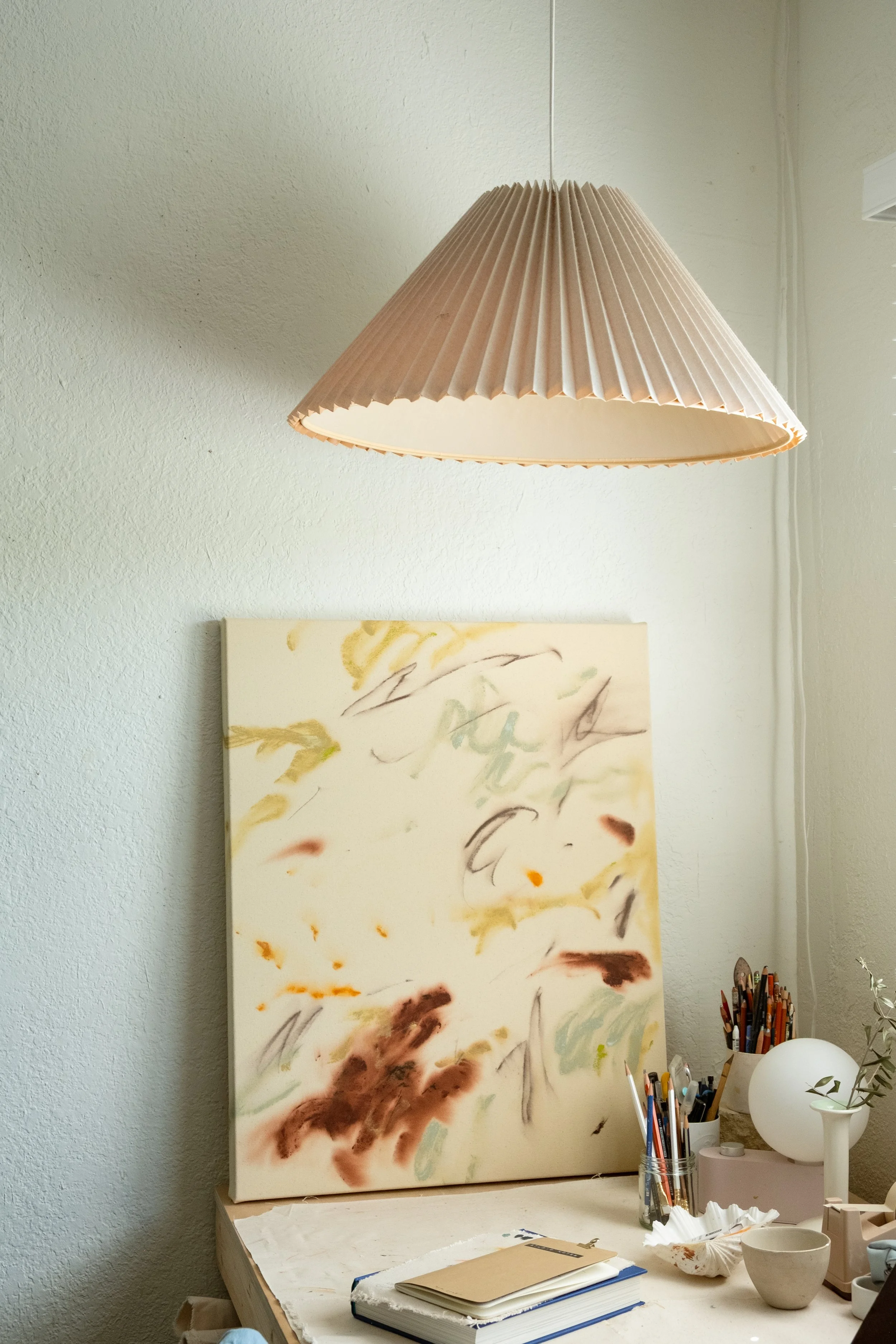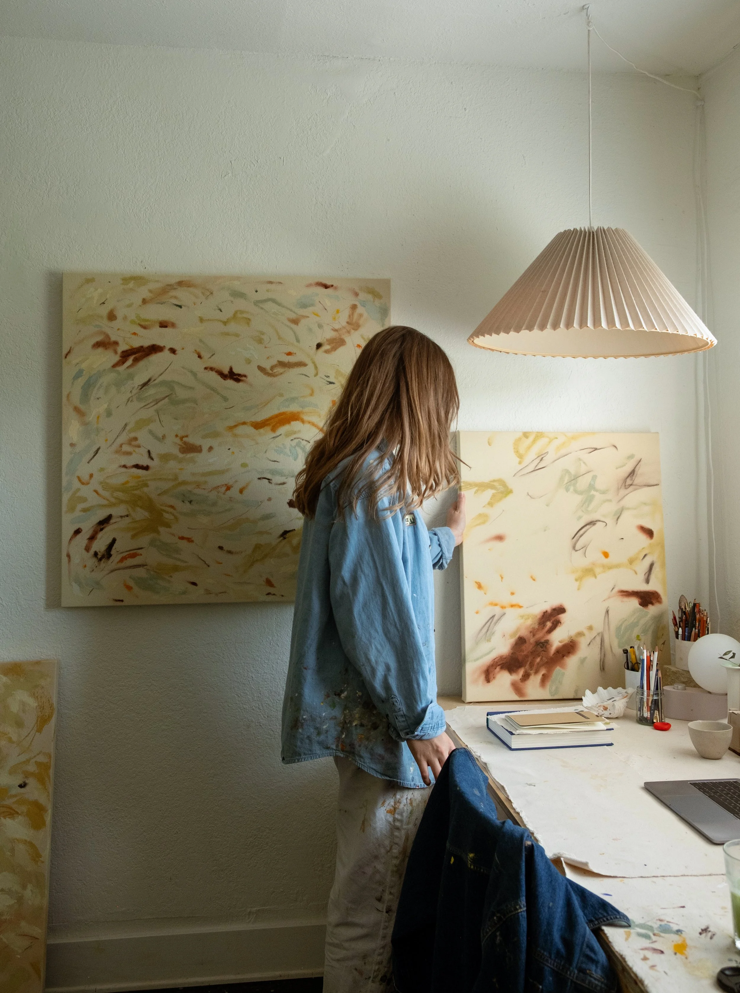Dreaming, with its soft hues and blurred marks, evokes a calm, dream-like quality that I wanted to capture with the piece and its name. I love its warm and cozy palette, as well as the spontaneous movement of the composition.