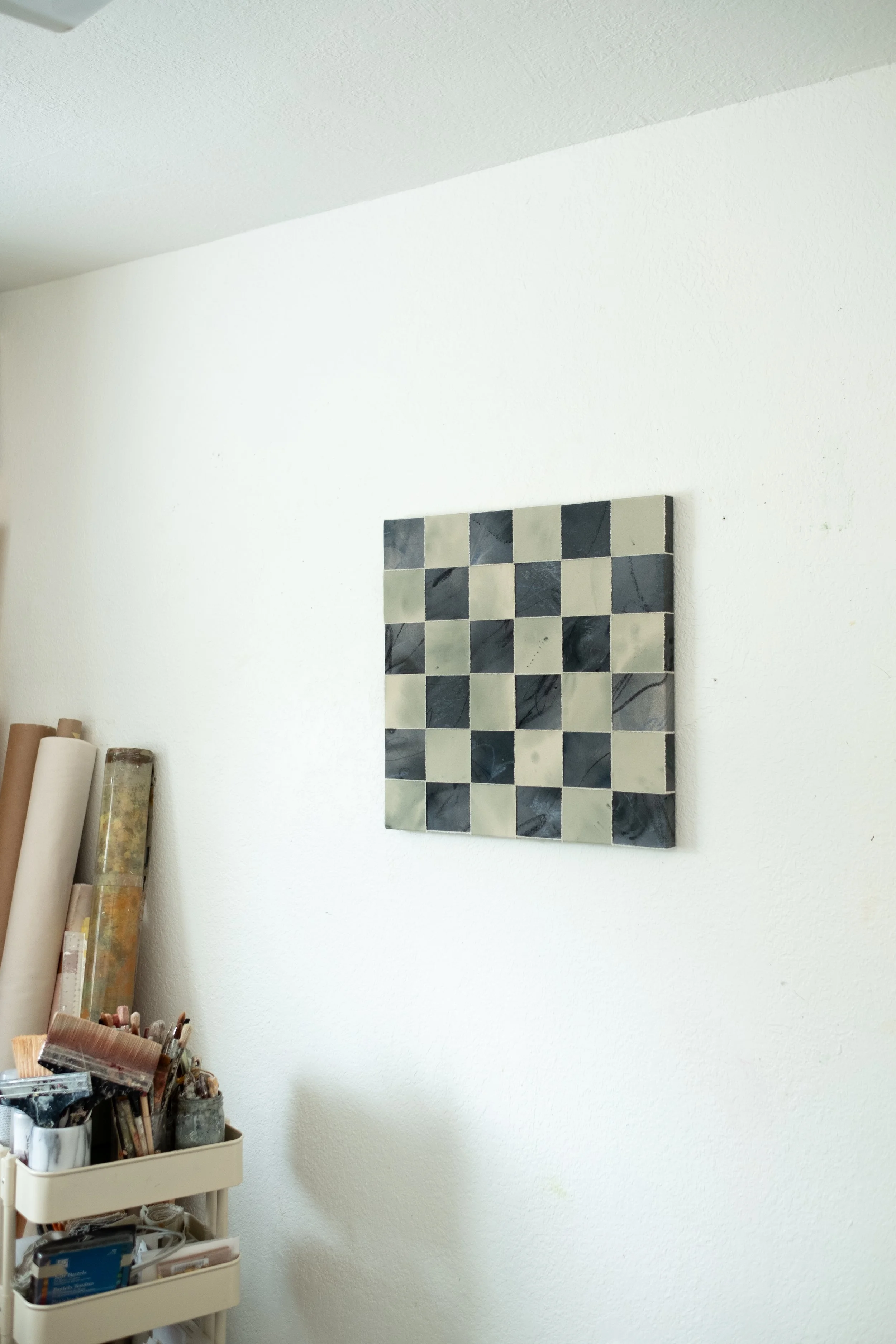Let the Light In is made by weaving together two separate canvases, bringing contrast and connection into a single surface.
