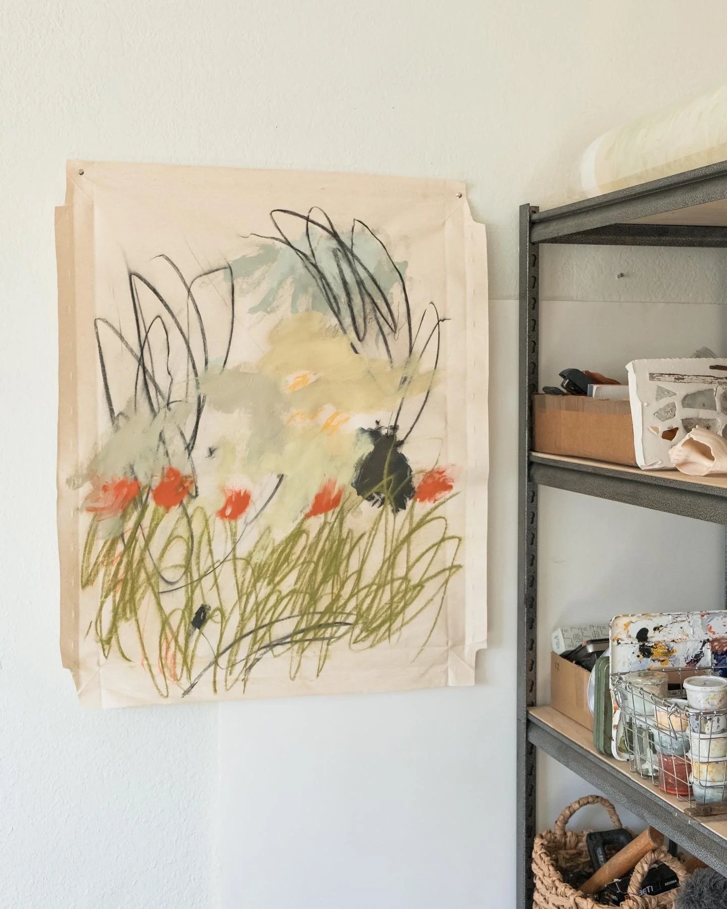 I painted "Flowers for Jesús" in a burst of energy that afternoon after walking by an unfinished canvas on my wall. I got the image of an abstract field of flowers and instantly felt moved to paint.