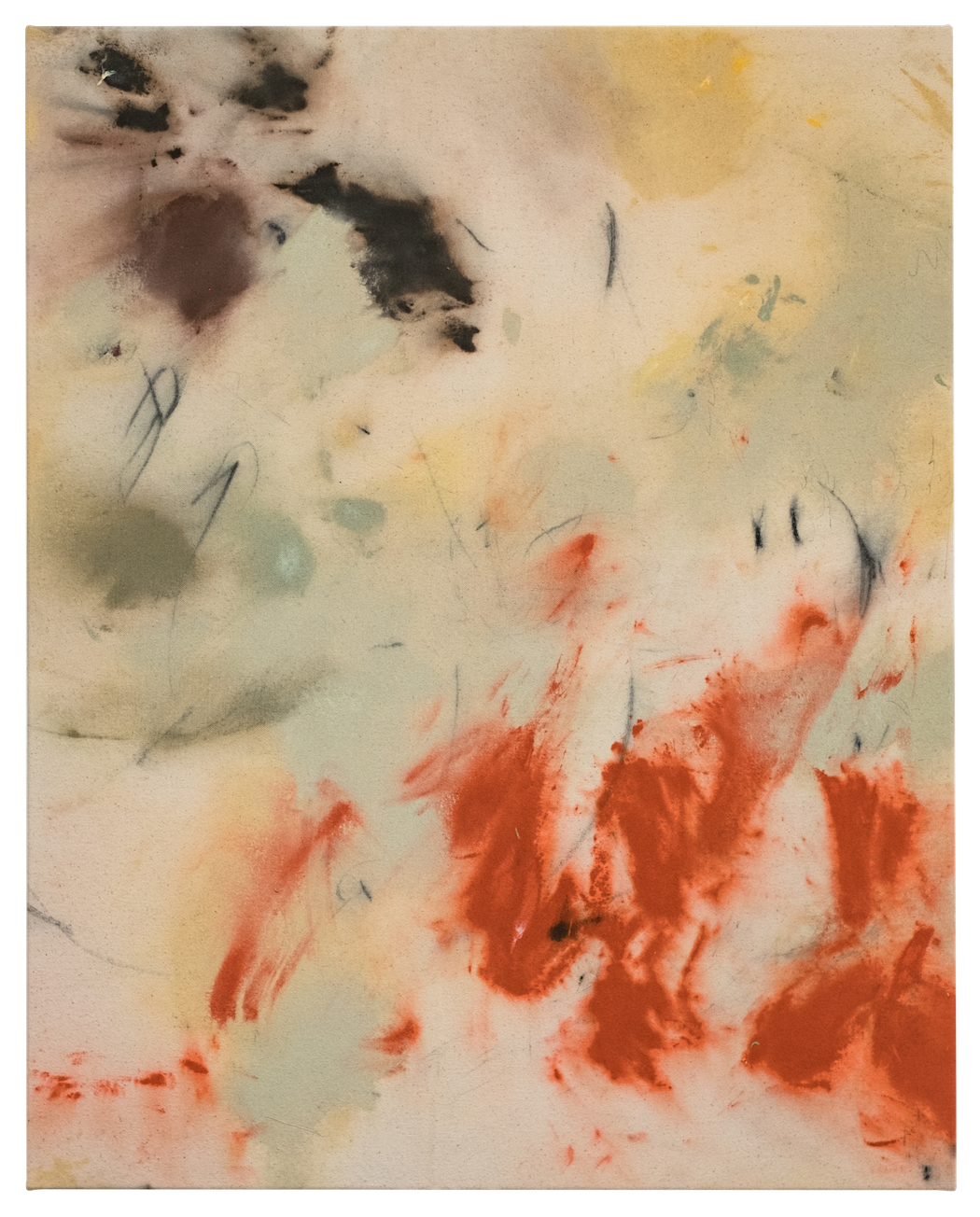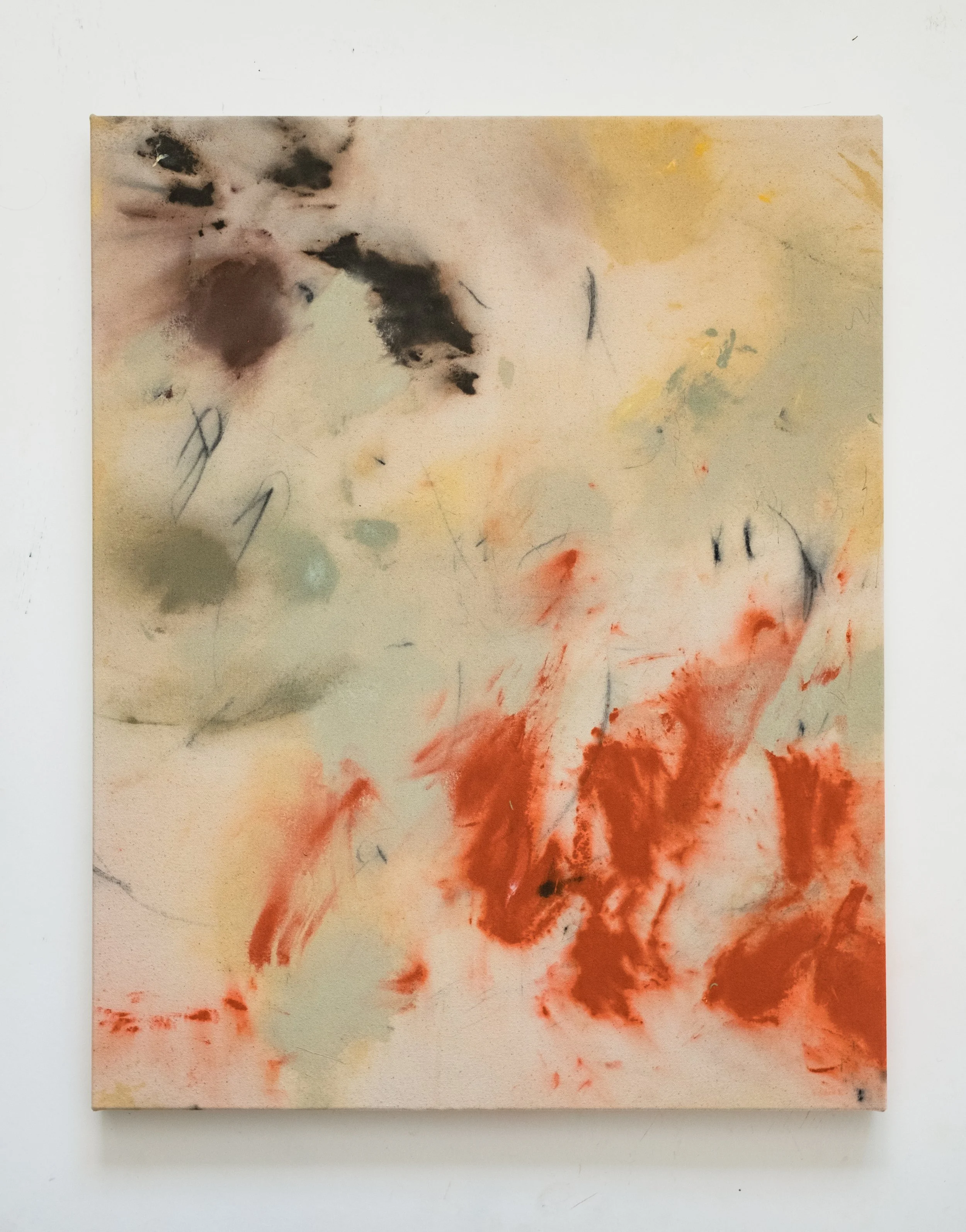 I explored a new-ish technique with this one that I'd love to try more of - after drawing spontaneous marks of charcoal, I wet the canvas completely before using a brush, a rag, and mostly my hands to apply smears of paint to the surface.