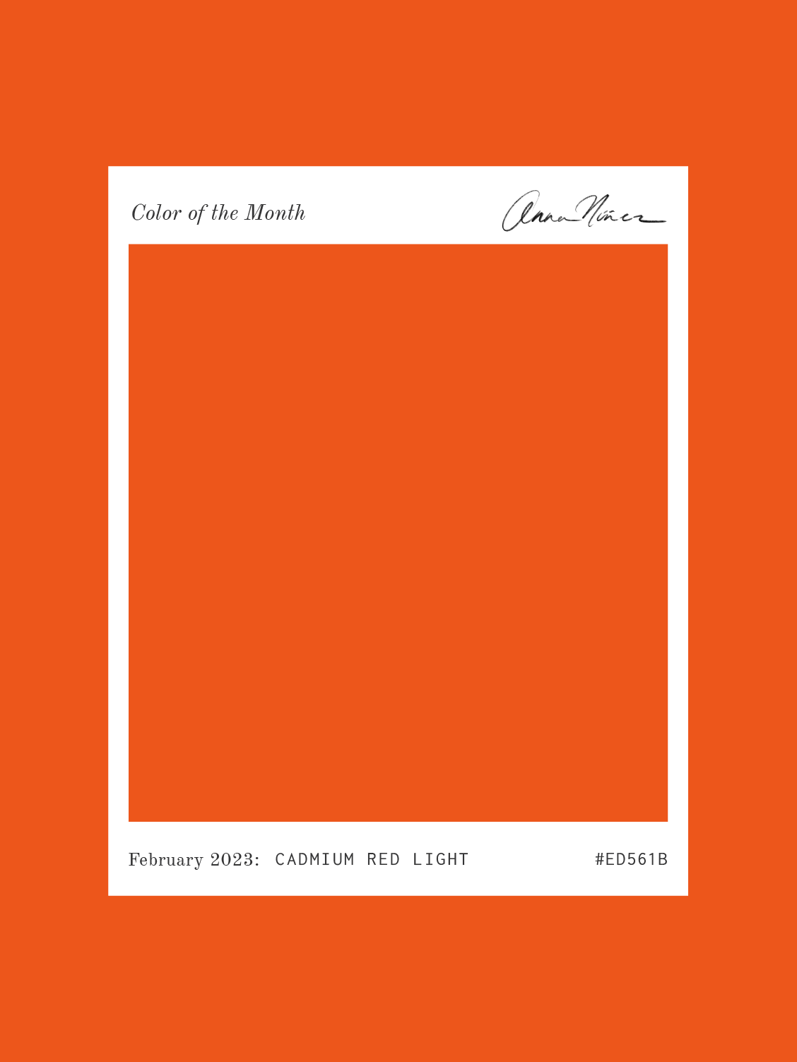 Below you’ll find a collection images inspired by this month’s Color of the Month, as well as some links to Cadmium Red Light in the wild.