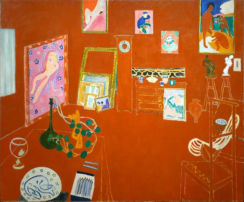 Henri Matisse was among the first to make it popular, incorporating it in paintings like Red Interior, Still Life on a Blue Table and The Red Studio, which puts the color at the forefront of the viewer's attention in an exciting way.